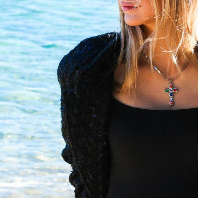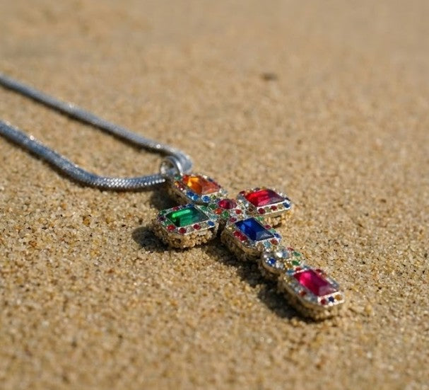 Sa croix multicolore amovible devient votre touche d’audace symbole de créativité, de force et de liberté.